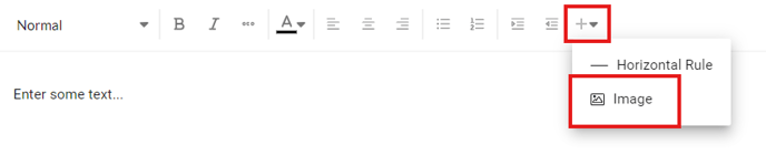 2. Within the text box widget, select the options icon located on the far right side of the top menu bar within the widget. Select "Image" to add an image to your text box.
